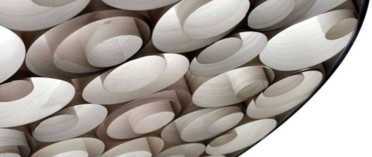Esta lámpara realizada a mano con materiales naturales, presenta una nueva forma de trabajar el Polywood®, abre la puerta para la utilización de estas mini estructuras a base de láminas de madera en forma de espiral. La Lampara Spiro de forma circular aglutina en su interior múltiples de estas estructuras con gran poder hipnótico que están inspiradas en las clásicas celosías ornamentales.